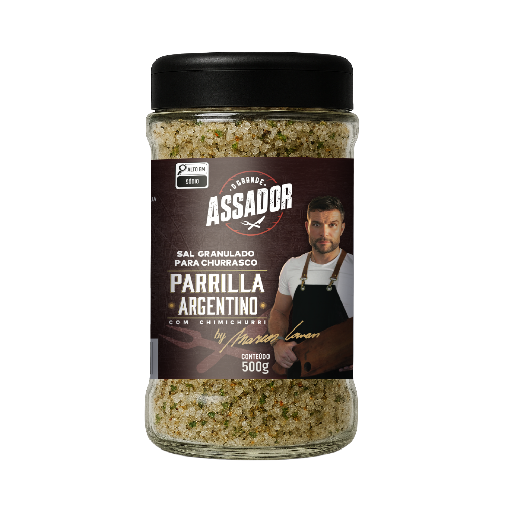 Mistura que combina o sal entrefino (grânulos médios) com ervas desidratadas. Proporciona uma salga uniforme, aderindo bem à carne sem ressecá-la, trazendo o sabor tradicional do chimichurri argentino, muito versátil para carnes bovinas (costela, ancho), linguiças e frangos.